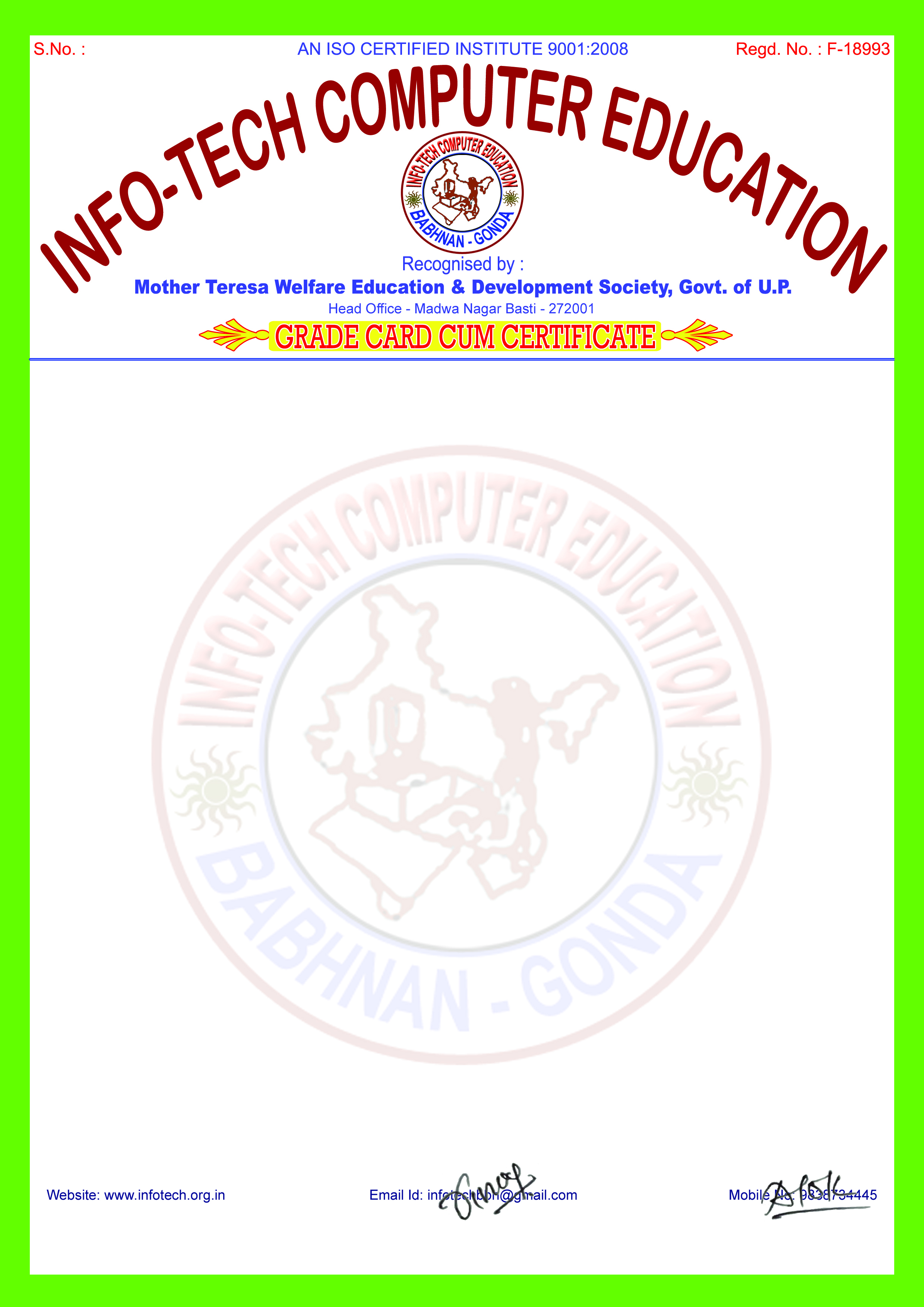 technical collaboration with M/s Info-Tech Computer Education, Madwa Nagar Basti, U.P.